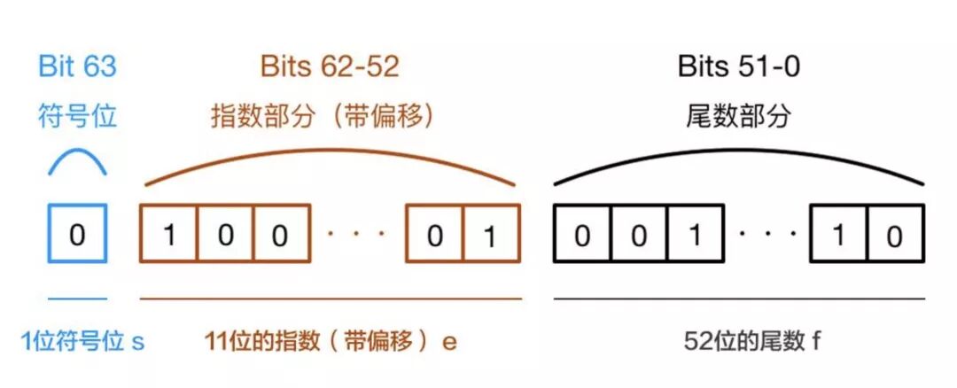 第 12 位到第 63 位:储存小数部分(即有效数字)f;